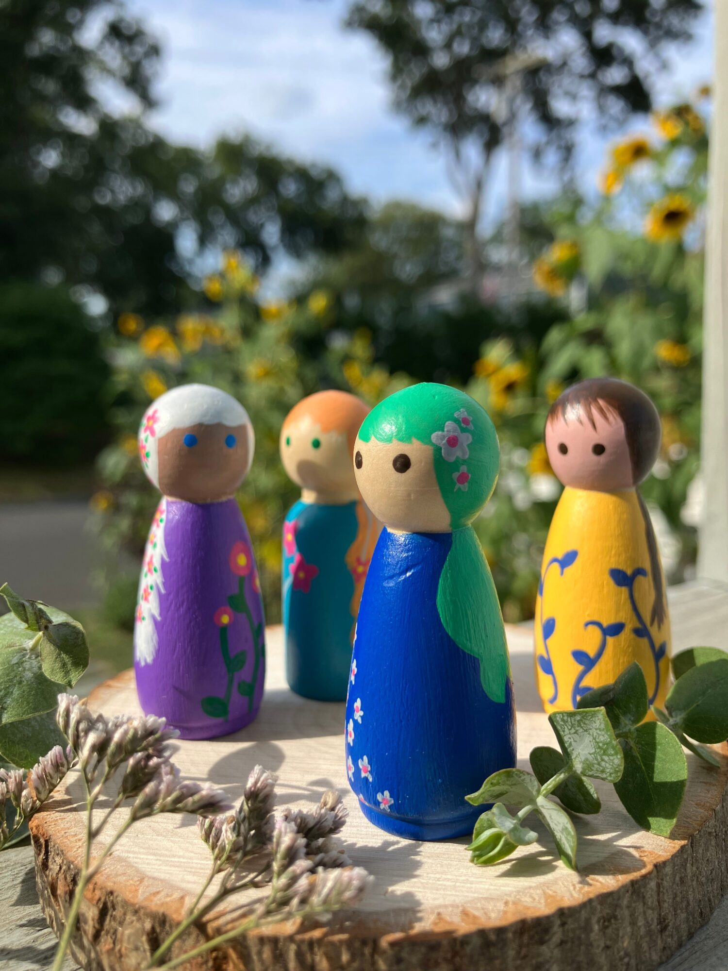 I create beautiful art. I love color and texture, In a world that is exceedingly ugly, beautiful art is a protest. I don’t have one specific medium or subject, but recently I’ve found myself creating landscapes with a surreal quality. Of course, I also fill my Etsy shop with fun things like peg dolls, art journals and kits, puzzles, and charms. I’m proud of all of it. I’m proud that I’m a mom, a wife, and a teacher, but I still have time to make and sell my art.