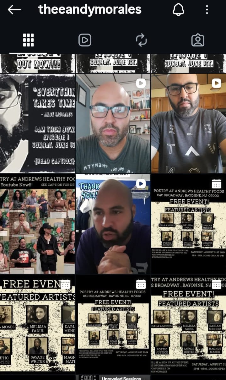 While poetry has always been my lifelong passion, my journey as a content creator truly began on Instagram in 2018, following the passing of my father. With my wife’s encouragement, I launched a podcast during the 2020 pandemic, which served as a springboard for expanding my creative reach. Since then, I’ve had the privilege of hosting both virtual and in-person open mics in Bayonne, New Jersey, building a deep connection with a supportive local community. Currently, I am on a hiatus to focus on mental health and recalibration, ensuring I return to my craft with renewed clarity and purpose.